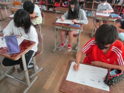 算数の「円の面積」の学習もまとめになりました。今まで学習してきたことを確かめるために練習問題に取り組みました。自分で丸つけをしながら,間違っているところはやり直していました。テストで良い結果につながるといいですね。
