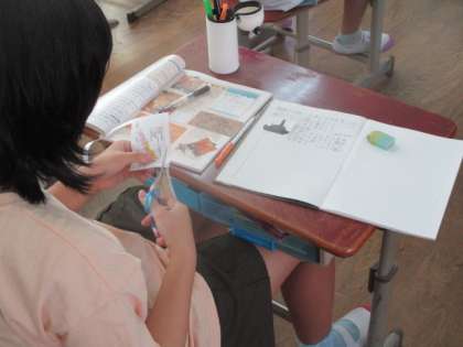 社会では「源氏は平氏をどのように破ったのか」について学習しました。まず,教科書や資料集を使って,源氏とはどのような人で平氏をどうやって破ったのかを自分で調べました。そして,調べたことをノートにまとめ,みんなで発表し合いました。