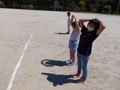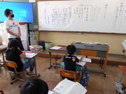 物語の読み進めていく学習計画を立てた後で,運動場でかげ送りを体験しました。二人で並んだり,ポーズを決めたりした影を空に送って,「見えた。」と喜んでいました。この先も,楽しいかげ送りができることを祈ります。