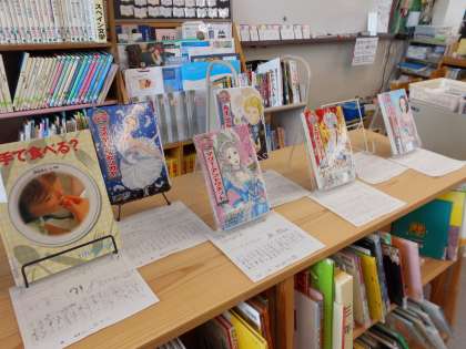 自分のお薦めの本のポップが完成し,図書館に展示されています。ポップには,オススメのポイントや本の簡単な内容紹介がされています。ぜひ読んでみてほしいです。
