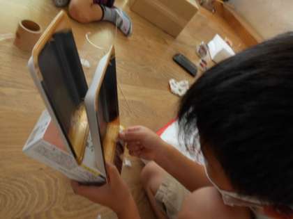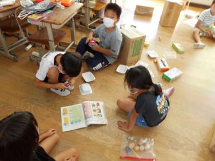 これまでの学習をさらにパワーアップさせるために動くおもちゃ作りに挑戦しました。教科書を見て作ったり,友達と協力して作ったり,友達のおもちゃを見て「もっとこうしたらどうだろう?」と考えたりしながら,活動している姿が見られました。