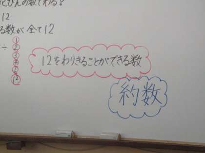 12を割り切れる数を探しました。それを12の約数ということを知りました。ふりかえりでは「他の約数もすぐ見つけられそう!」と言っている人もいました。