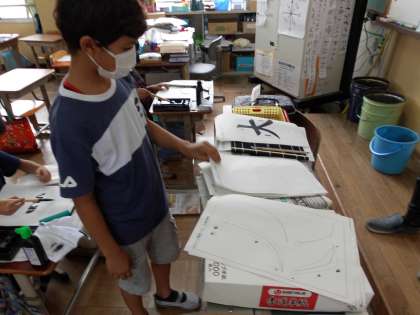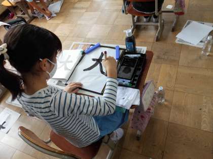 左はらいや右はらいに気をつけて,「大」の字を清書しました。線だけで練習するプリントなどを使って,くりかえし練習して,半紙に清書しました。どの子ものびのびと力強くかけていました。