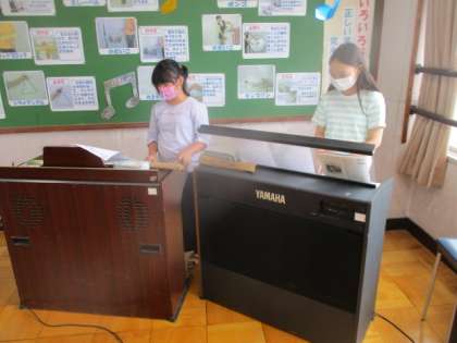 同じ楽器を選んだ人たちで教え合いながら練習をしていました。早く合わせられるようになりたいですね。