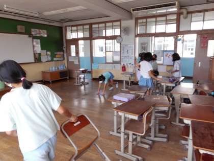 そうじの時間に教室に入ると,電気が消えていました。「電気,点けないの?」と聞いたら「エコライフです。」「地球が熱くなるのを防いでいるんです。」という答えが返ってきました。身近なところから実践しようとする気持ちがすてきですね。