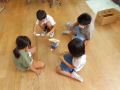 各グループで行う遊びのルールを見直したり,遊び道具の最終調整をしたりしています。油断すると他のグループが気になってしまいますが,がんばって取り組んでいました。