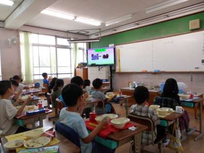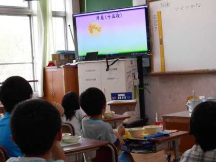 お月見を意識した「なごみ献立」でした。なぜこの時期に「里芋」を食べるのか,「ずいき」「ずいき祭り」とは何か,などをムービーを見て,知りました。