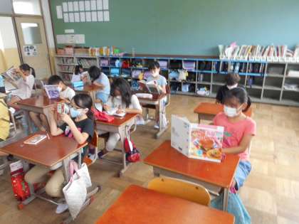 学級文庫や図書館から借りた本を選んで,もくもくと読書をしています。