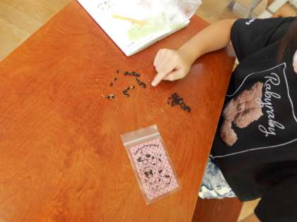 最初は2個の種を蒔いたことで始まった学習でしたが,どの子も2個以上の種が取れ,たくさんの種ができることを発見しました。