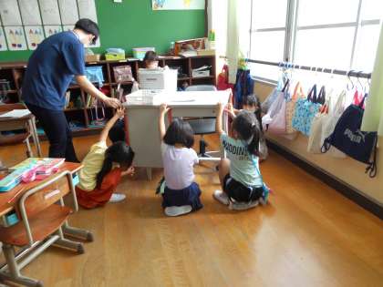 大きな教師机が,教室の扉から運び出せるかを考えました。