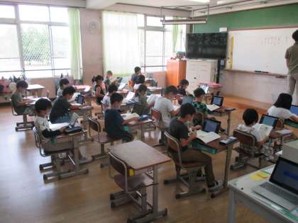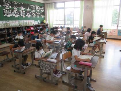 朝学習での音読練習の様子です。