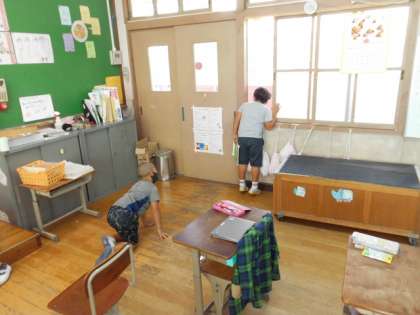 国語科の学習の様子です。かえるくんになりきって窓をのぞいています。