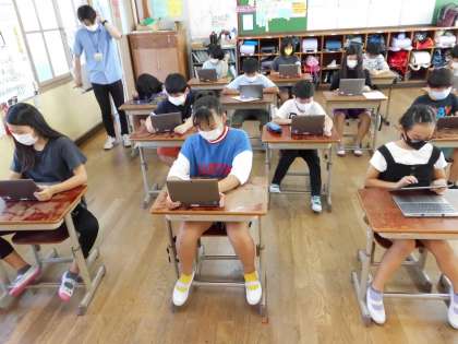 その日に算数で学習したことを,お昼のがっちゃんタイムでミライシードを使って復習しました。授業で学習した時には分かったつもりでも,もう一度問題を解いてみると「あれ?どうやったかな。」と考えてしまうこともあるようです。正解できると,小さく「よし!」とガッツポーズをする人もいました。