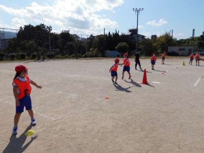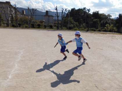 運動会の練習をしました。3年生と4年生のたてわりグループで赤組と白組に分かれてバトンリレーを行います。それぞれバトンの受け渡しの練習をしたあと,試しの競走をしました。3年生も,4年生もバトンをもらう人がリードを取りながら受けることができました。運動会が楽しみです。