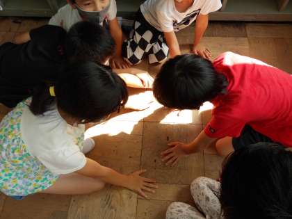 日なたと日かげの違いを調べました。まず,教室の日に当たっている所と日が当たっていないところとをさわって比べました。窓枠などは熱いくらいになっていました。日なただから暖かいということは何となく知っていましたが,改めて調べてみて,その違いに驚いていました。