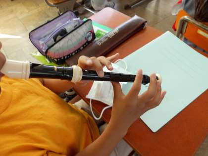いよいよリコーダーを吹いての練習を始めることができるようになりました。オルガンや鉄琴などの楽器とリコーダーの役割を決めて,合奏の練習を始めることにしました。どの子からもやる気が伝わってきます。