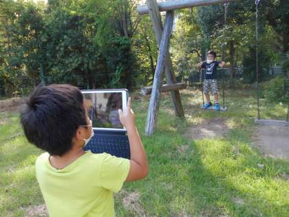 「ブランコのことをかこう」といって,写真をとっていました。