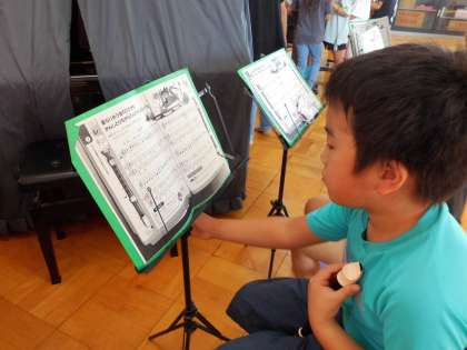 うけもつ楽器を決めるためにオーディションをすることになりました。なんとか合格したい!と自分の希望の楽器を一生懸命練習しています。がんばって!