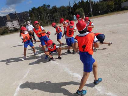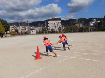3・4年生合同で行う,団体競技「ゴーゴーハリケーン」の練習です。