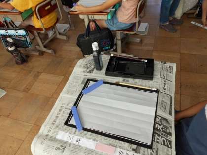 小筆の使い方を練習しました。支援の先生に作ってもらった,名前のお手本を置いて,半紙に8回ずつ練習しました。名前を漢字で書いたりひらがなで書いたりして,丁寧に書いていました。