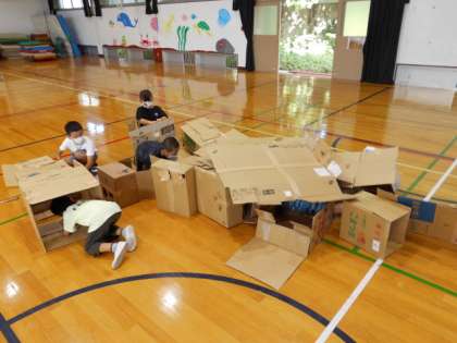 自然と友達と協力して楽しんでいました。大きな基地のようなものを作ったり,プラネタリウムを作ったり,それぞれが思いついたことを試していました。