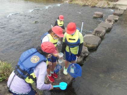 山科川の水質についても調べました。ペットボトルに川の水を入れて,学校に帰ってから薬を使って検査しました。