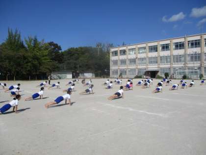 運動会に向けて表現運動の練習に一生懸命取り組んでいます。何度も繰り返し練習しているので,タイミングがそろってきました。遠くから見るとすごくきれいに見えるようになってきました。本番が楽しみです。
