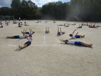 運動会に向けて表現運動の練習をしています。運動場の練習も慣れてきたので,砂を気にしたり,足を痛がったりする人が減り,演技に集中する様子がたくさんの場面で見られるようになってきました。きれいにそろう部分も増えてきて,素敵な演技に仕上がってきました。本番まであと少し!完璧に仕上げていきましょう!