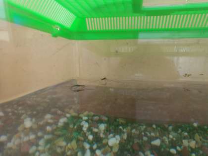 山科川を調べてみて,捕まえた生き物を飼育しています。アメンボやエビ,ヤゴが,元気に過ごしています。やがて,川に戻すときまで,様子を観察していきたいと思います。