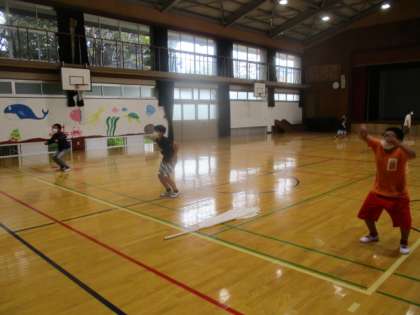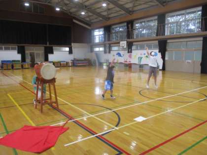 各色3名ずつの応援団が体育館で練習をしました。今年の応援は,感染症対策のため声を出せるのは応援団のみとなっています。応援団が応援をリードする必要があるので,一生懸命練習を重ねています。本番まであと少し!