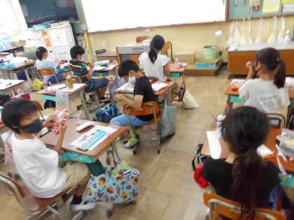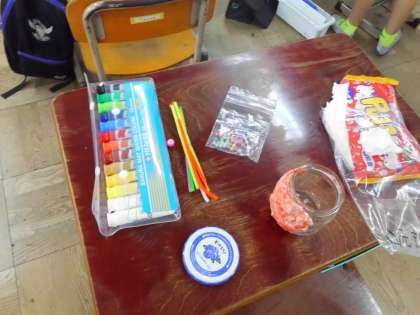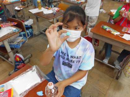 紙粘土に色を混ぜてこねたり,丸めたり。