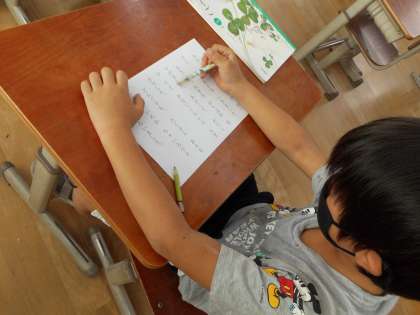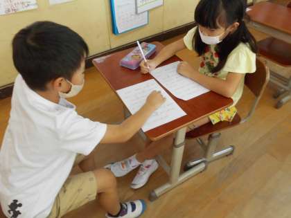 1学期に「は」「を」「へ」の学習をしたことを思い出し,間違いを探しました。