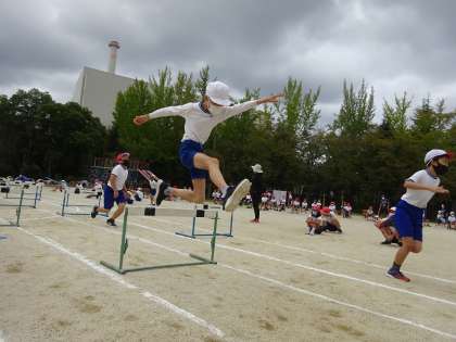 5,6年生ともに,リズムよくハードルを跳び越えていました。
