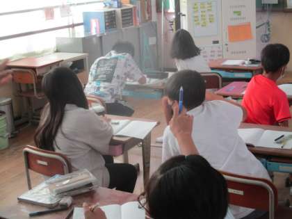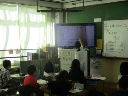 算数の「面積」の学習が始まりました。今まで学習してきた長方形と正方形の面積の求め方を確認した後,直角三角形の面積が求められないかを考えました。すると,隣の友達に説明したり,前に出てきて自分のノートをもとに解説したりする進んで説明する姿が見られました。そして最後には,「三角形の面積は長方形や正方形の面積の半分になっている」ことに気付きました。今後は他の図形も今まで学習してきたことを使って面積が求められないかを考えていきます。