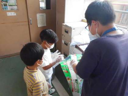 アース委員会では,ウサギの世話をしています。現在はアース委員会の子どもたちが1年生に世話の仕方を教えています。優しく教える姿はとても微笑ましいです。