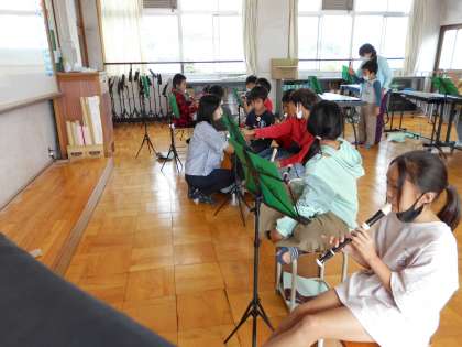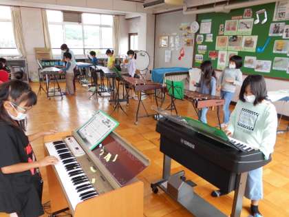 「パフ」を合奏します。それぞれ受け持った楽器のパートごとに練習しました。リコーダー組をはじめ,鉄琴,木琴なども,しっかりと演奏できるようになってきていて,上達してきたなと感じました。