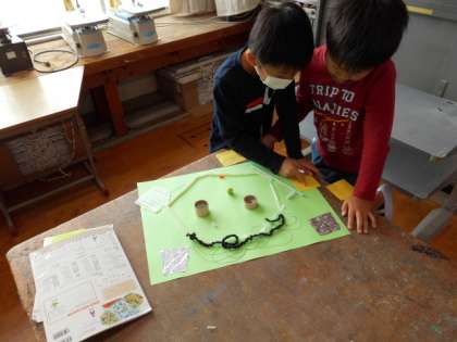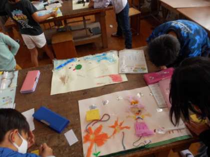 付箋にメッセージを書いてプレゼントして,作品のタイトルの答え合わせ。友達と作品を楽しんでいました。
