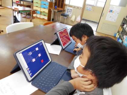 石田小学校のおすすめをみつけてロイロノートを使ってまとめる学習をしています。