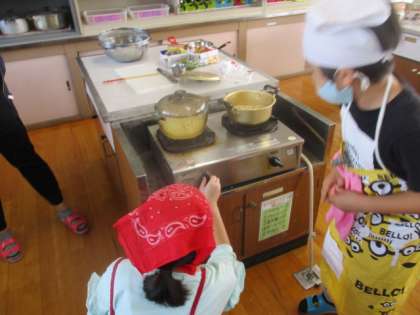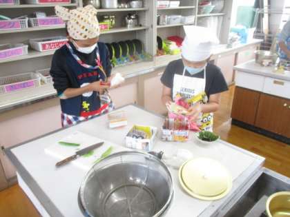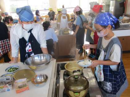 「食べて元気!ご飯とみそ汁」の学習で,ご飯とみそ汁を作りました。調理シミュレーションをしていたので,準備万端…と思いきや,やはり本番は違ったみたいで,洗い物がなかなか終わらなかったり,火のつけるタイミングを間違えたり,水の量が少なすぎたりとハプニングがたくさんありました。しかし,班のみんなと協力して何とか完成させることができました。