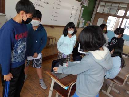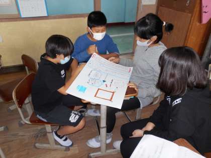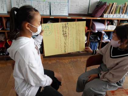 グループごとに校長室へ提案しに行くのですが,教室で待っているグループが提案の練習をしていると,すでに提案し終わったグループの人たちが「校長先生役,するわ。」と言いながらよりよい提案ができるようにアドバイスをしていました。