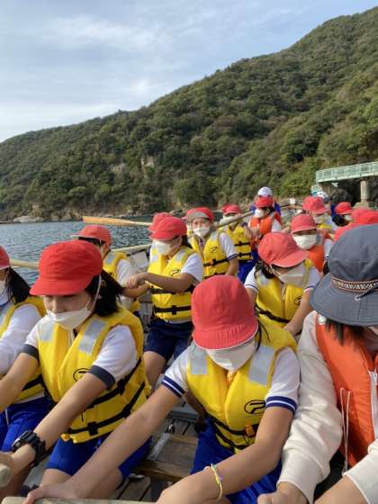 櫂の扱いやみんなでそろえるのが、なかなか難しかったですが、目標のところまでたどり着き、無事に帰ってくることができました。