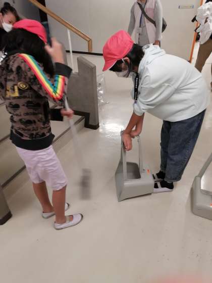 荷物をまとめ、掃除をしています。