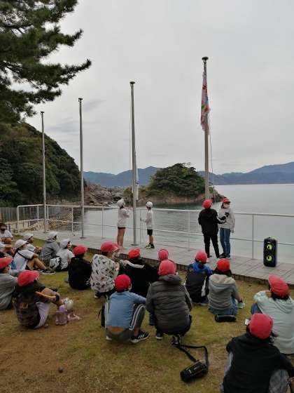 朝のつどいを小栗栖小学校のみなさんと行いました。旗あげ、学校紹介、ダンスを一緒にしました。仲良くしていきましょう!