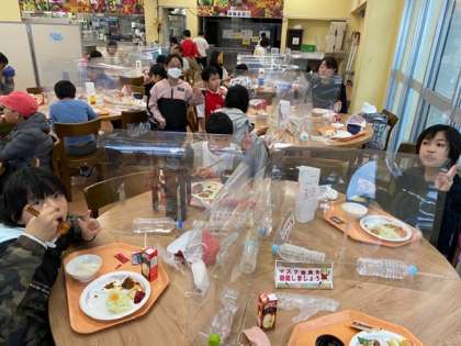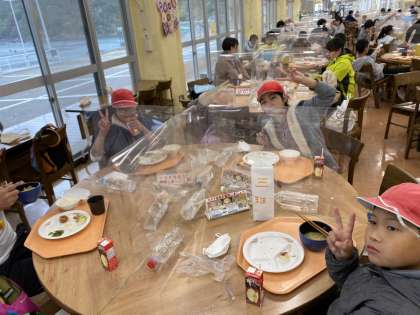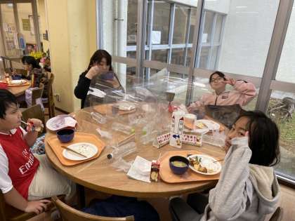 スノーケリングも終わり、海の家最後の食事を味わっています。