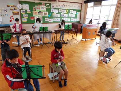 合奏「パフ」も仕上げの段階です。全員にリコーダーで練習をしました。そのあと,パートごとに練習をしてきた成果を一緒に合わせて合奏しました。