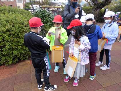 その中で,もし小栗栖小学校の1年生と出会ったら名刺交換をしようとすることになっていたので,動物を見ながらも,小栗栖小学校の1年生を見つけると,傍によって行き,