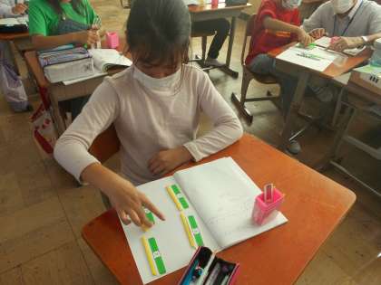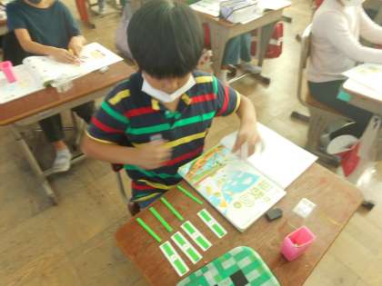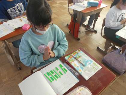 数え棒を使いながら,どのように計算するとよいかを導き出しました。