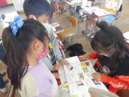 「中」を読んでみると,分かりやすい食品から順に,紹介されているということに気づき,段落のはじめの「次に」「また」「さらに」などの言葉の使い方にも注目することができました。