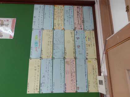 宿泊学習を終えて,自分たちの学習をふり返りました。そこで見つけた自分のできること,もう少しがんばったらいいことを踏まえて,次の目標を決めました。この目標を達成できるように努力できるみなさんであると信じています。がんばっていきましょうね。