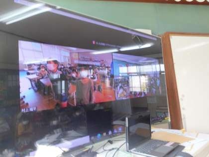 代表の子にクラスの様子を伝えてもらったり,一人一人がカメラの前に立って自己紹介をしたりしました。